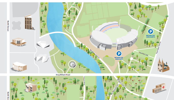 There are two Wilson Parking car parks with accessible parking spots located at Adelaide Oval – Wilson East Car Park (entry via King William Road and Wilson North Car Park (entry via Pennington Terrace). The East Car Park is closer to the DEA Conference function rooms. For both car parks, take the lift to Level 1 and follow the directional signage to the John Halbert Room.